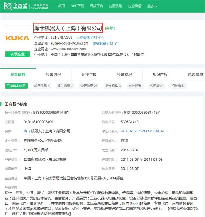 美的在全球500强榜单上位列第323位,是库卡目前的实际控制人。三年前,美的向库卡的股东们提出了收购要约,希望将持有的这家德国机器人公司股权由13.5%提高到30%以上。每股115欧元的优厚报价,相较库卡当时的股价高出了30欧元。并且,在收购时,美的立下了七年内不得干涉库卡经营的条款。