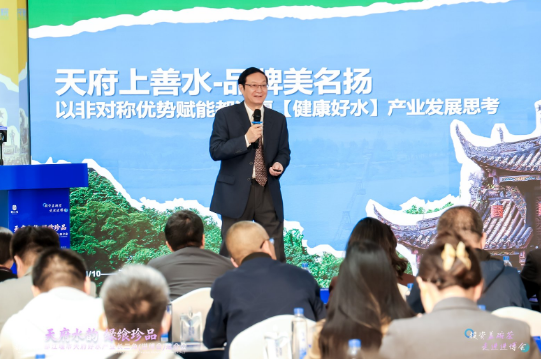 前瞻产业研究院院长徐文强以《天府上善水 品牌美名扬》为题,进行了都江堰城市产业价值主题分享,将活动推向高潮。徐文强院长从全球视野与产业前沿出发,深度剖析了新消费趋势下“绝对健康”的价值追求,指出都江堰凭借“健康好水”与“品牌文旅”的独特复合优势,能够为企业打造直击人心的“绝对健康”品牌标签提供有力支撑,并通过法国依云小镇的成功案例,展示了“水+城市”融合发展的巨大潜力,为都江堰“健康好水”产业发展指明了方向。